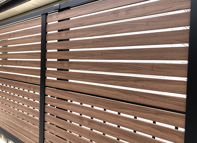 また、奥側の住宅との間には目隠しになるよう木目調のフェンスを設置してあります。
