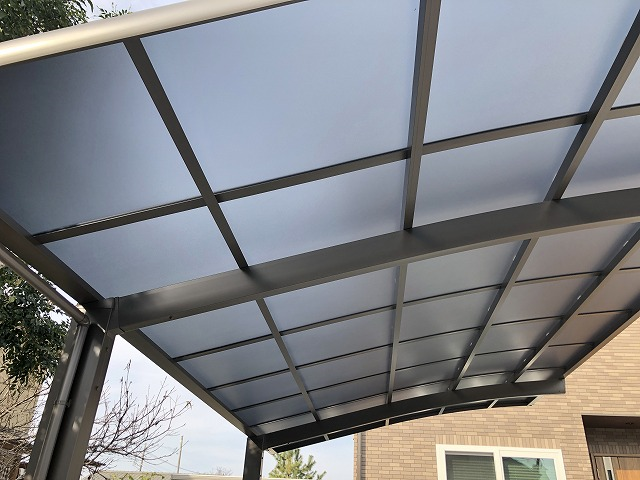 カーポートの屋根は熱吸収ポリカを採用しています。