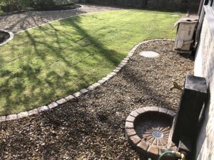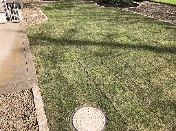 外周部は防草シートを敷いた上で化粧砂利敷きにしてあります。