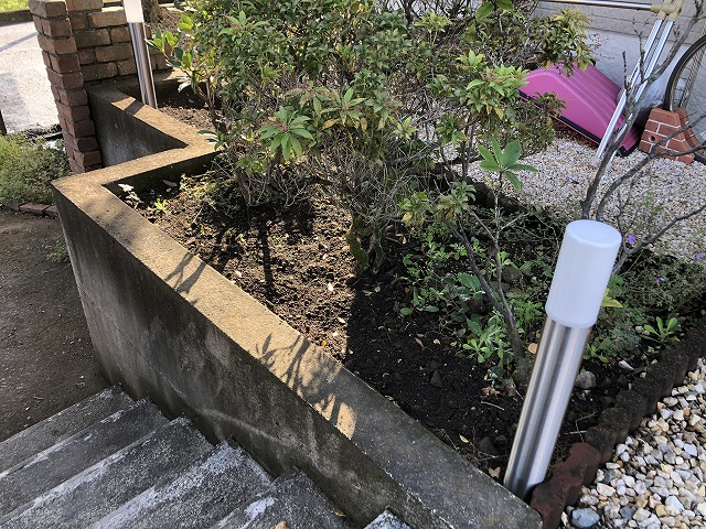 暗くて危なかった玄関前の階段付近にはポールライトを設置しています。
