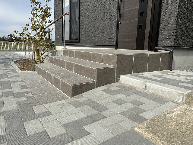 既存家屋の舗装との高さを調整するため、複雑な高さ設定で施工しています。