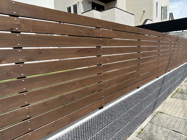 フェンスは防腐防蟻処理を施した天然木材のウッドフェンスです。