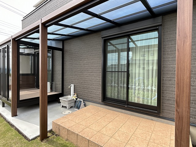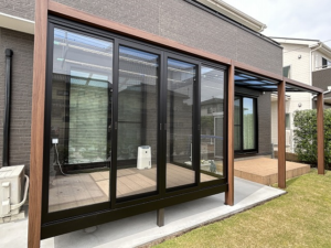 ガーデンルームとテラス屋根設置の工事をご依頼いただきました。