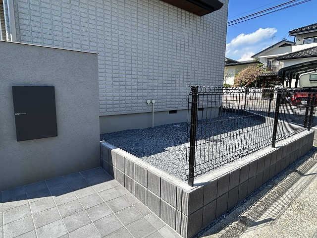 外周部は化粧ブロックにメッシュフェンスを組み合わせました。