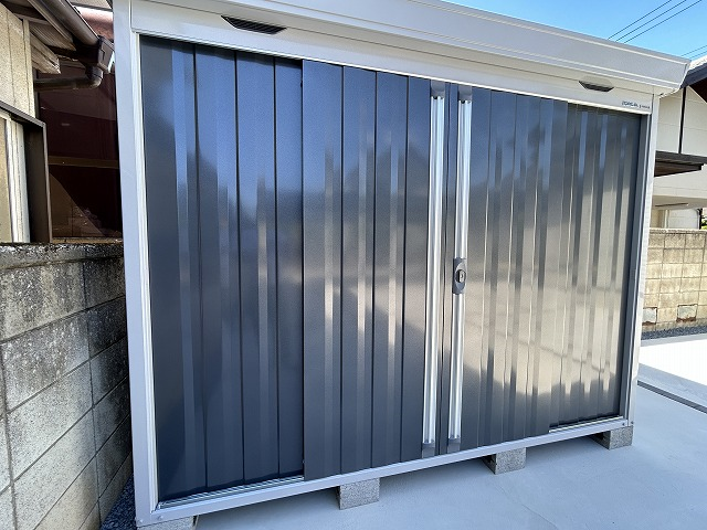 物置は幅約2.6m、奥行約1.4mのサイズでしっかりと収納することができます。