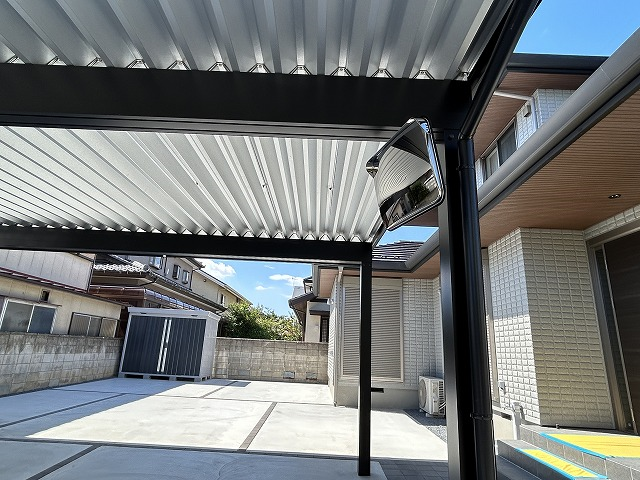 カーポートには出入りの際に安全確認するためのミラーも取り付けてあります。