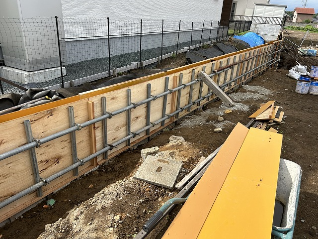 高低差のある隣地との境界にしっかりとしたコンクリート擁壁を作ってゆきます。