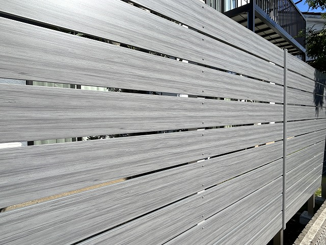 樹脂製ですが横方向の意匠があるためウッドフェンスのような風合いです。