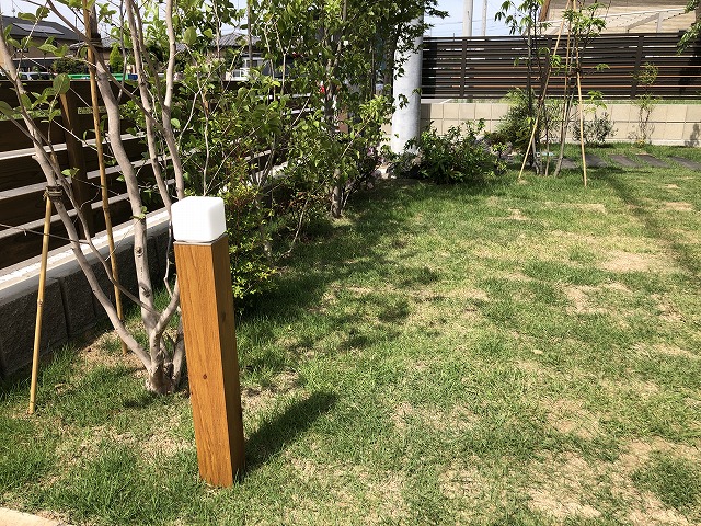 照明は門柱のマリンライト、ポールライト、アップライトが合計4灯入っています。